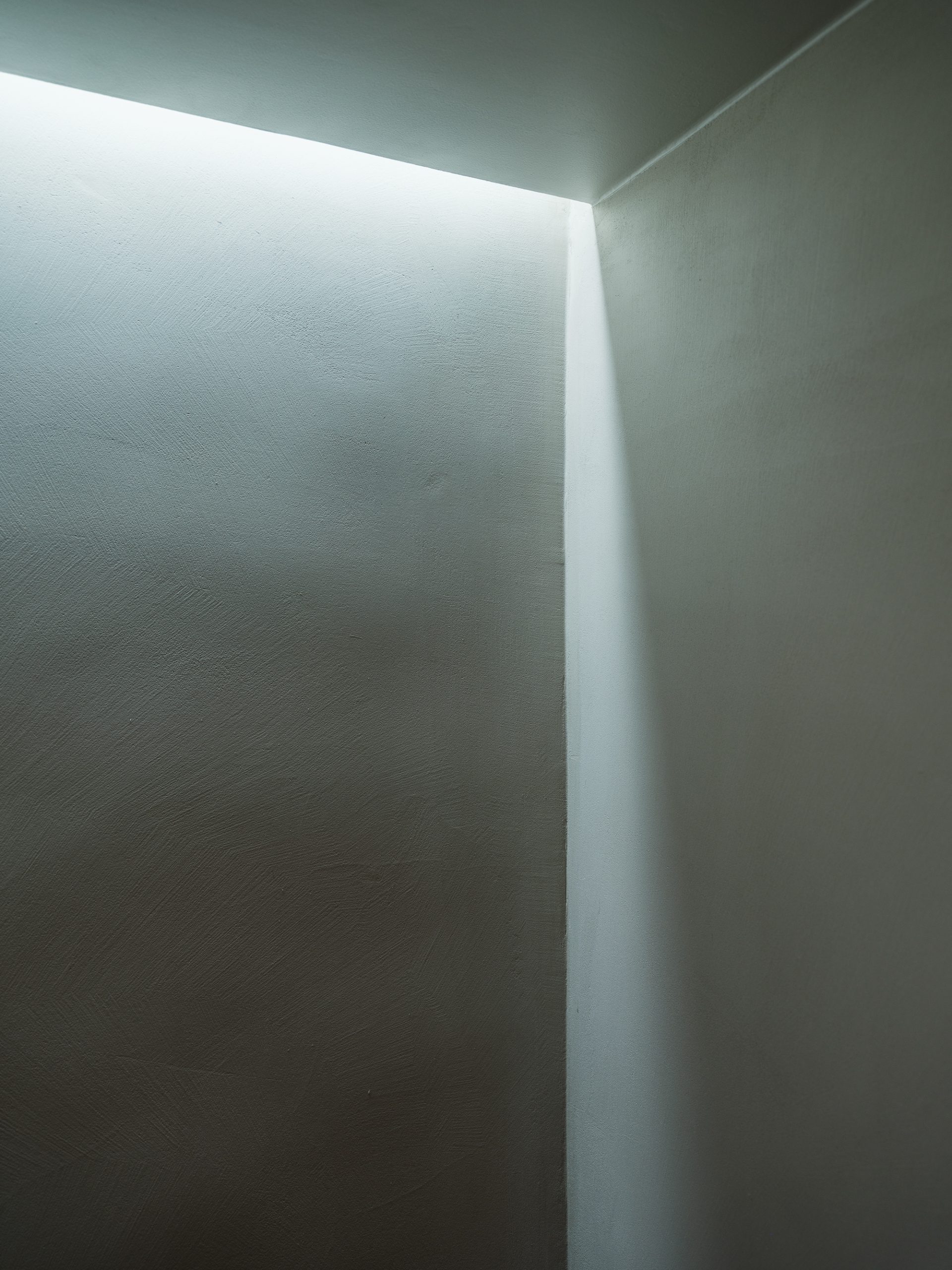 La salle de bain n’ayant pas de fenêtre, “on a créé une sensation lumineuse grâce à l’utilisation d’un bandeau led inséré dans une gorge qui court sur la partie haute de la douche.”